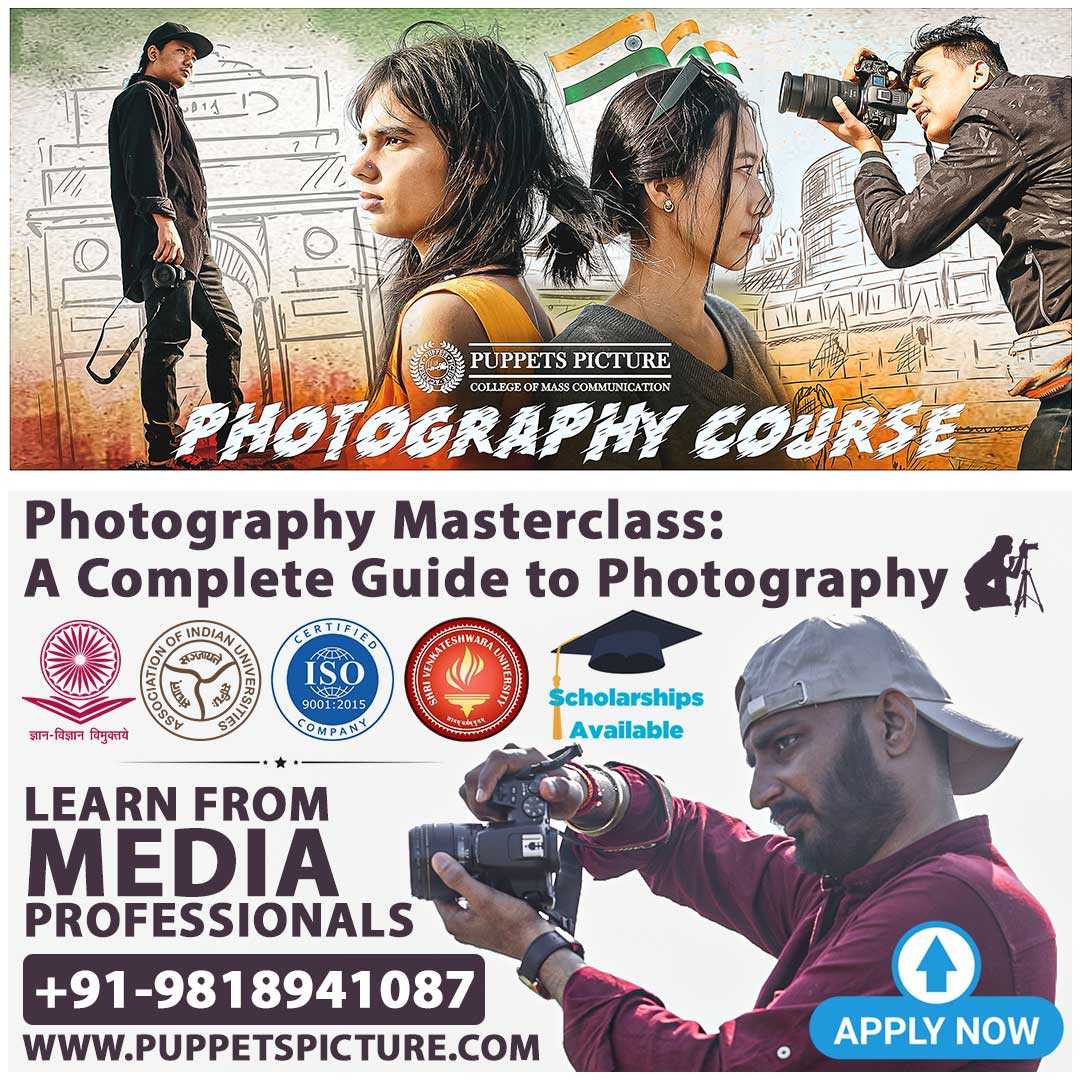 Build a career-ready photography portfolio with intensive, project-based training in composition, lighting, studio & outdoor workflows, editing and visual storytelling. Train on real briefs, publish your best work, and graduate with a polished portfolio for brands, media, and creative clients. Master the art of photography with hands-on training in studio lighting, outdoor shoots, composition, and editing. Build a professional portfolio and launch your career in fashion, product, event, or documentary photography at Puppets Picture, Delhi NCR.